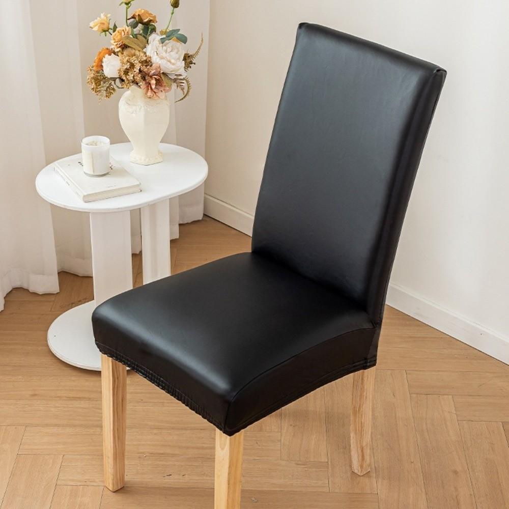 Premium Material: PU Leather. Comfortable and wrinkle resistant. The stretch fabric makes the chair slipcover fit for normal and high back parson chair. It is also a great choice for homes with kids or pets.