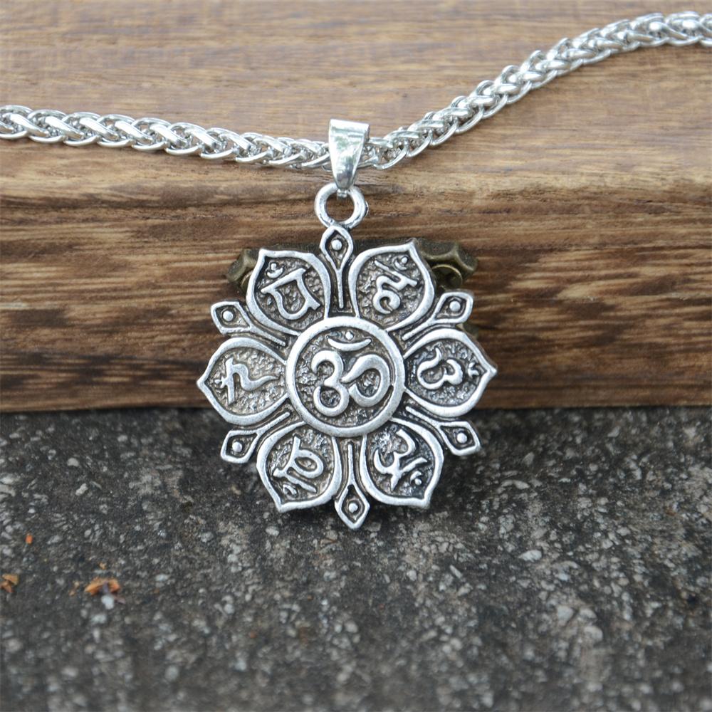 OHM OM AUM Yoga Lotus Flower Buddha Pendant Necklace For Women Religious Mandala Buddhism Jewelry