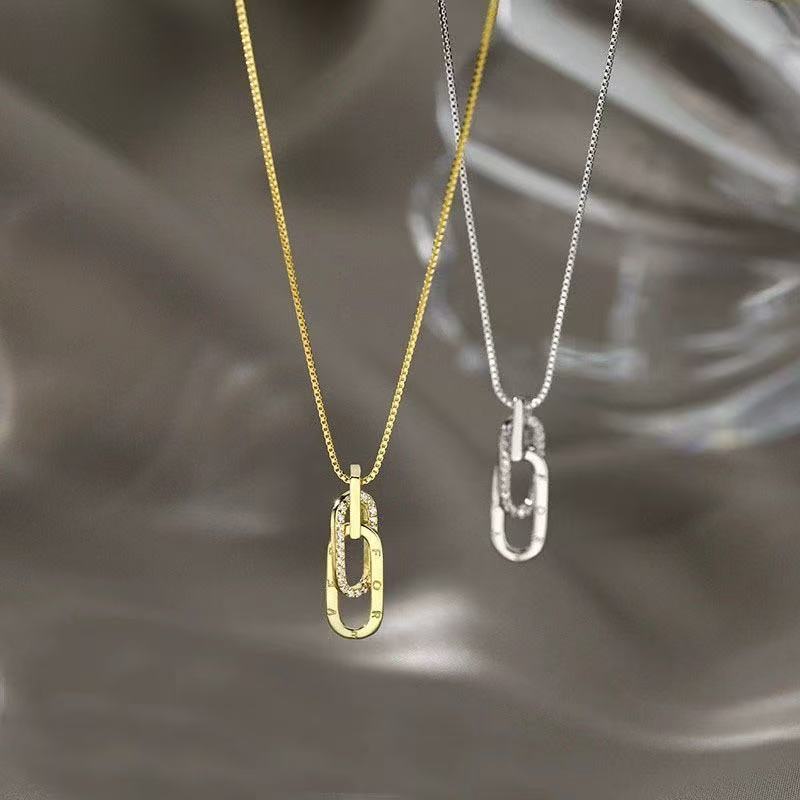 New 925 Silver Necklace Personality Charm Simple Style Geometric Shape Pendant Choker for Women's Exquisite Jewelry