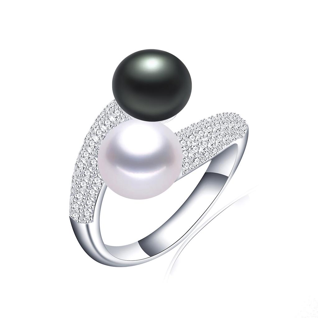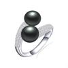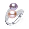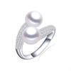 New Double Pearl Adjustable Natural Freshwater Pearl Original 925 Silver Zircon Women's Ring Fine Bridal Jewelry