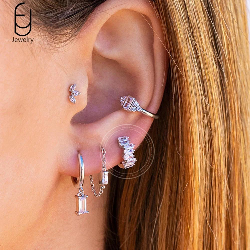 925 Silver Ear Buckles Fashion Hoop Earrings White Crystal Luxury Women's Earrings Wedding Women's Jewelry Premium Gift