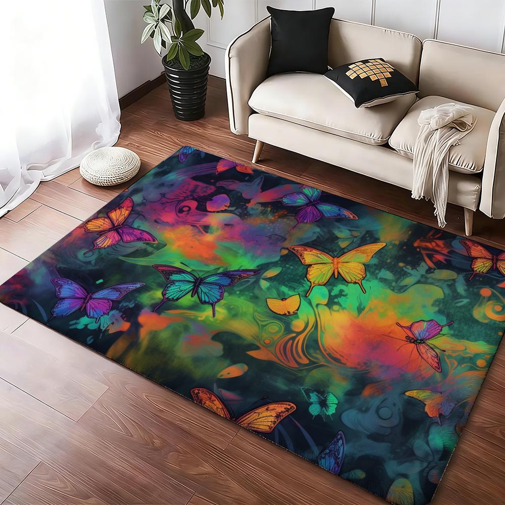 Butterflies Funny Floor Mat Cozy Flannel Soft Thick Non-Slip Mat For Living Room Bedroom Kitchen Decor Rugs