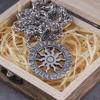 Stainless Steel Viking Rune Pentagram Pendant Necklace with Wooden Gift Box Nordic Magic Jewelry