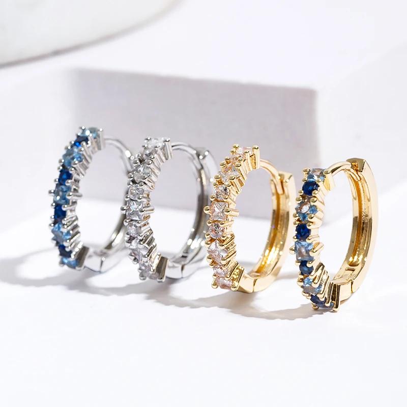 Luxury Stainless Steel Colorful Zircon Hoop Earrings For Women Fashion Korean Huggie Earrings Wedding Jewelry Pendientes Mujer