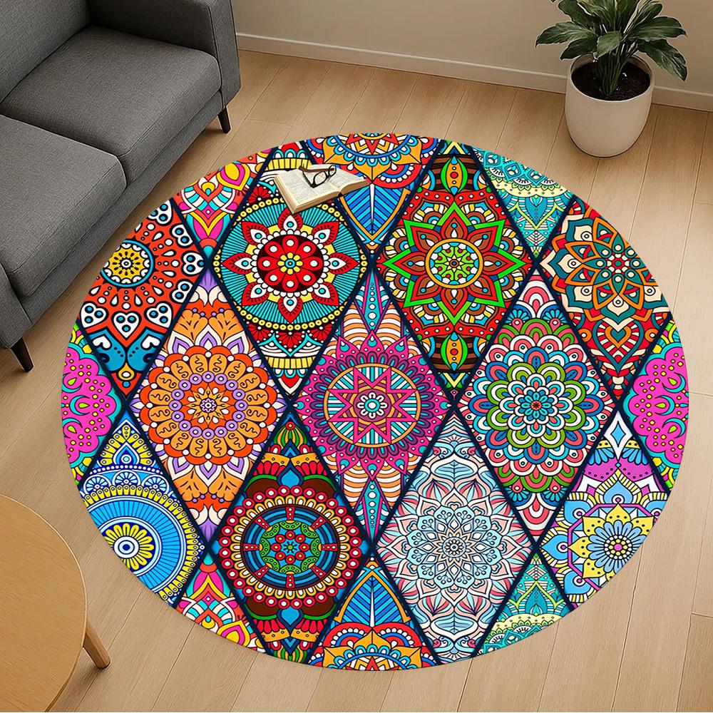 1pc Mandala Colorful Round Chair Mat Area Rug - Non-Slip, Floor Mat for Office, Bedroom, and Indoor Decor C1118195