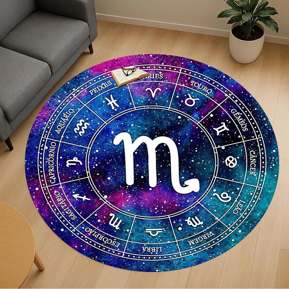 1pc Zodiac Scorpio Round Chair Mat Area Rug - Non-Slip, Floor Mat for Office, Bedroom, and Indoor Decor C1125398