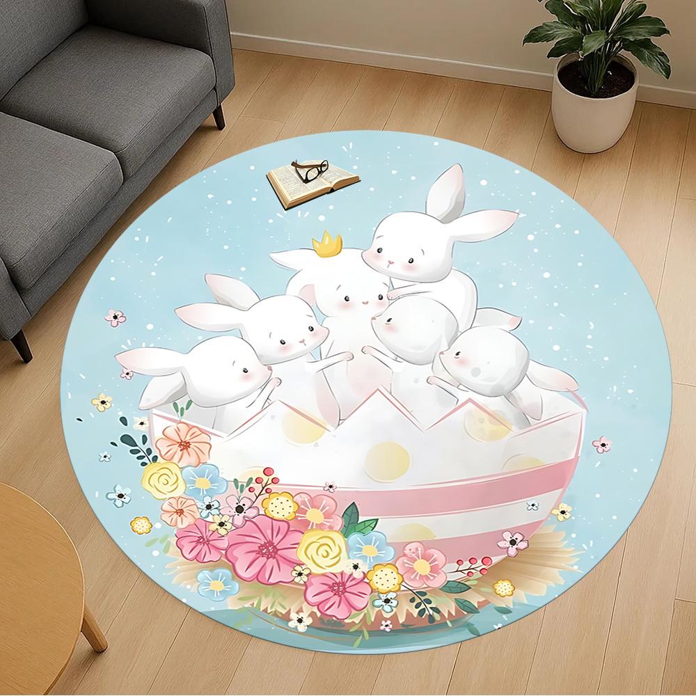 1pc Rabbit___flower Round Chair Mat Area Rug - Non-Slip, Floor Mat for Office, Bedroom, and Indoor Decor C1125175