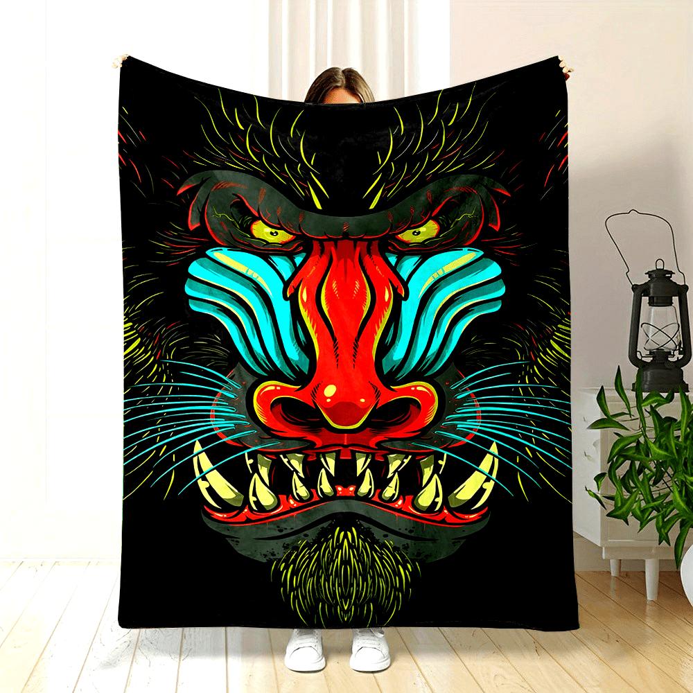 Angry Mountain Gorilla Cartoon Pattern Flannel Printed Blanket Suitable for All Seasons for Living Room Office Sofa and Travel