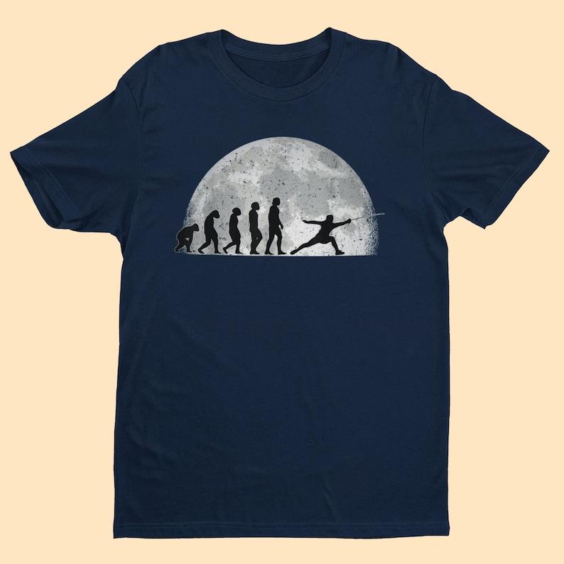 Evolution of The Sword Fencer T Shirt From Ape Through Prehistoric Man To Fencer Fencing In The Moonlight Graphic T Shirts Tees