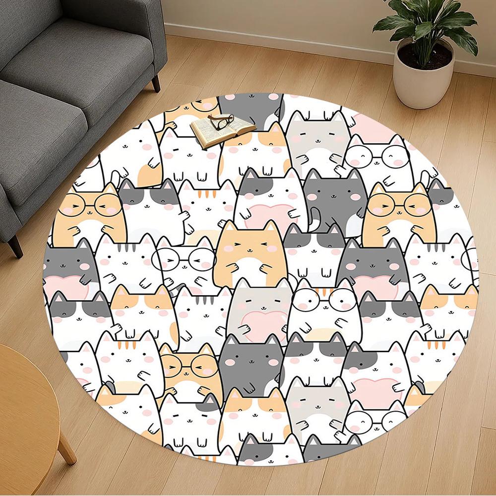 1pc Cat Circle Round Chair Mat Area Rug - Non-Slip, Floor Mat for Office, Bedroom, and Indoor Decor -1002090