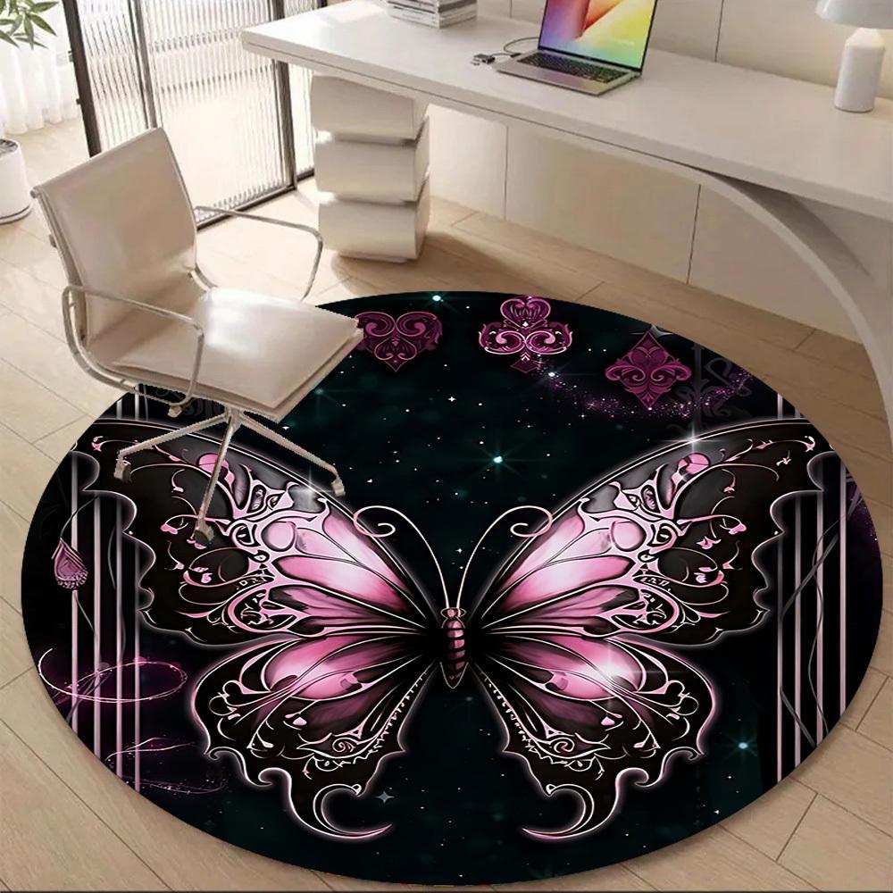 1pc Butterfly Fantasy Office Round Area Rug, Indoor Mat Suitable ForOffice, Under Office Chairs Bedroom Living Room Home Decor T190