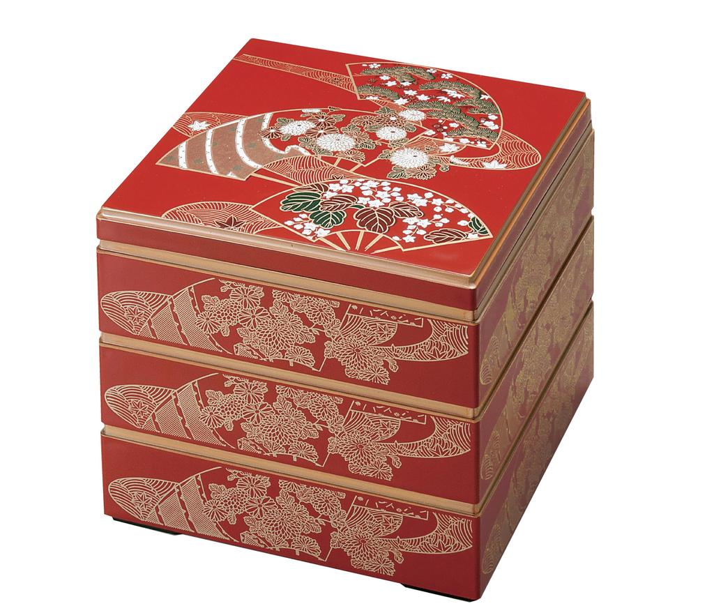 Wakaizumi Kuraju Red Fan 3 Lacquerware, 6.5-inch Box, (Black Interior), Tiers, H-156-58A