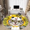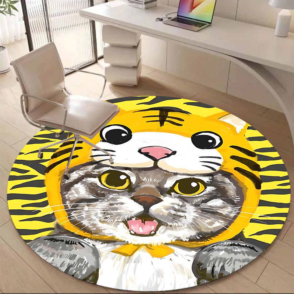1PC Tiger Cat Office Round Area Rug, Mat Suitable ForOffice, Under Office Chairs Bedroom Living Room Home Decor, Room Deco