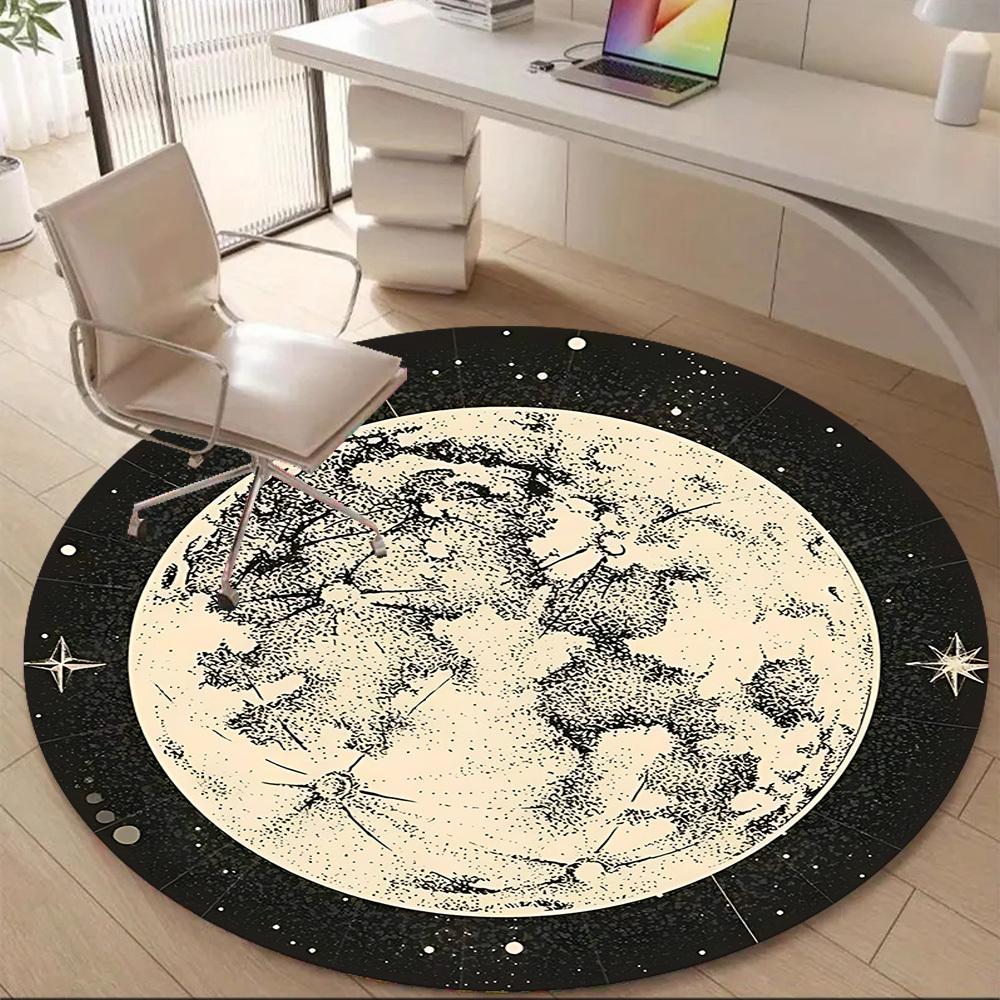 1pc Moon Celestial Office Round Area Rug, Mat Suitable ForOffice, Under Office Chairs Bedroom Living Room Home Decor, Room Deco