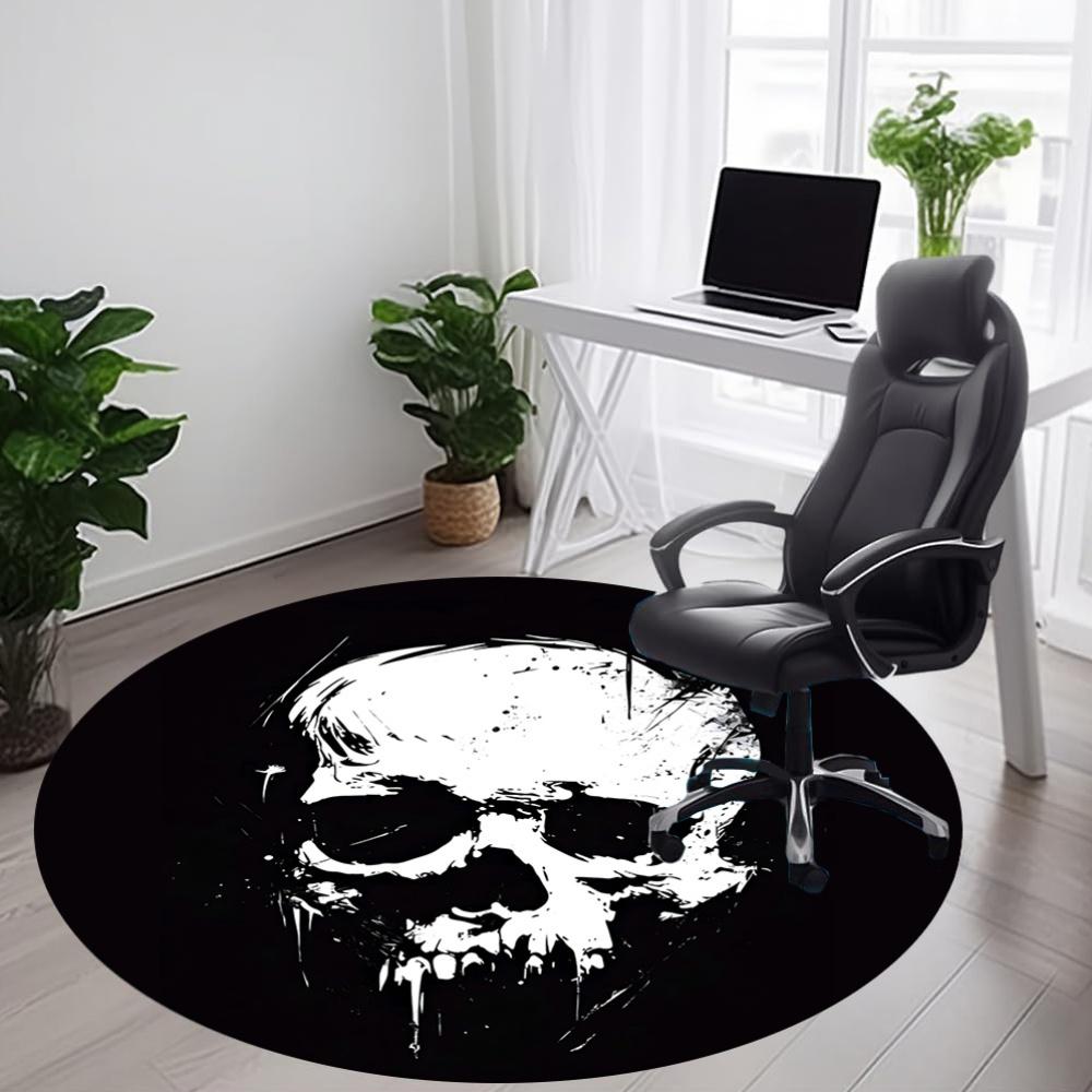 1pc Skull Art Office Round Area Rug, Mat Suitable For Office, Under Office Chairs Bedroom Living Room Home Decor, Room Deco