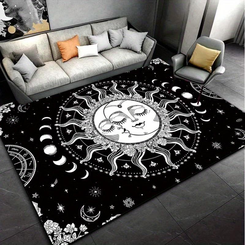 Sun and Moon Mandala Rug for Living Room Decor Boho Chic Area Rugs Home Decor Anti Slip Carpet Can Be Machine Washed