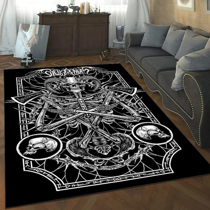 Gothic Skull Rug: Black & White Skeleton Design for Living Room Decor - Unique Home Accessories Skid Resistant Carpet
