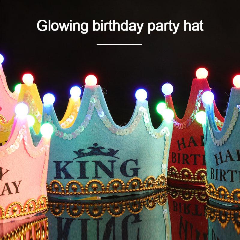1PC LED Glowing Happy Birthday Hats Party Crown Glow Headband King Princess For Adult Child Xmas Decorations Atmosphere Supplies