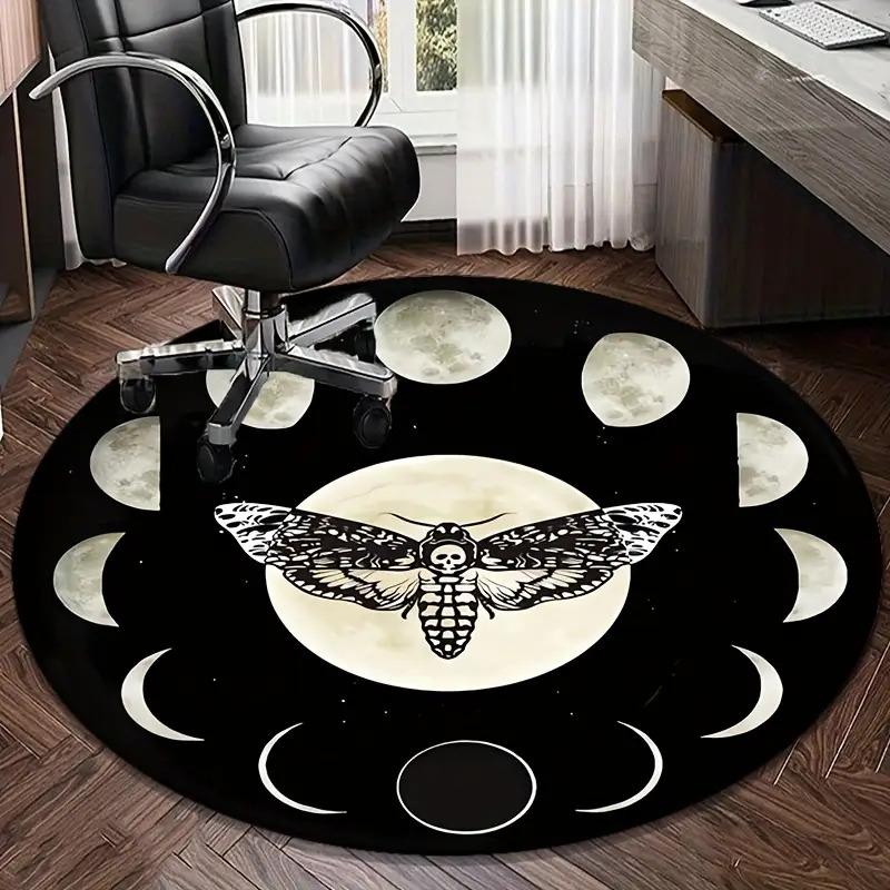 Crystal Velvet Carpet Crystal Velvet Gothic Bohemian Round Mat - 3D Horror Skull Moth & Moon Phase Design Black Mat with