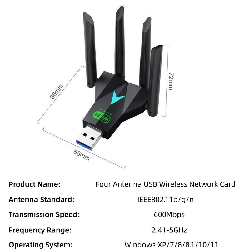 Dual Band 600Mbps WiFi USB Adapter 2.5/5GHz WiFi Dongle USB3.0 Wireless Receiver Driver Free for Win XP/7/8/8.1/10/11 PC/Laptop