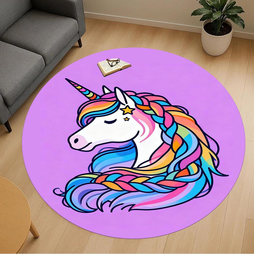 1PC Rainbow Unicorn Round Chair Mat Area Rug - Non-Slip, Floor Mat for Office, Bedroom, and Indoor Decor -Gift D1127180