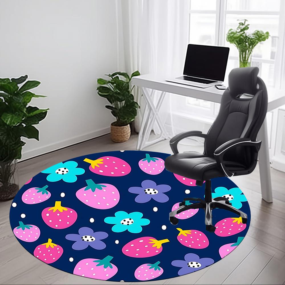 1pc Strawberry Floral Office Round Rug, Non-slip, Soft and Durable Office Rug for Interior Decoration, Perfect for Office,Decoration Yy260204074