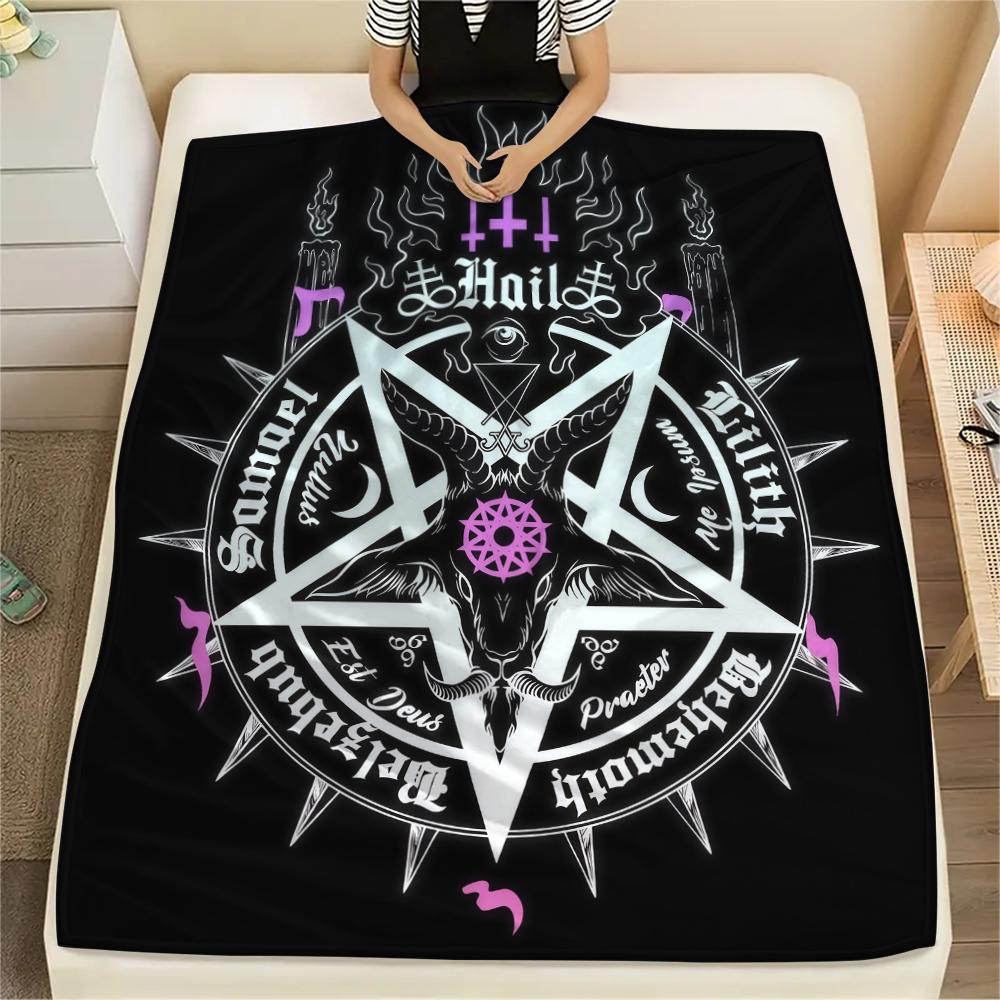 1PC Satan Symbol Print Flannel Blanket, High Quality All Seasons, Home Decor, Warmth and Comfort, Perfect for Christmas Gifts