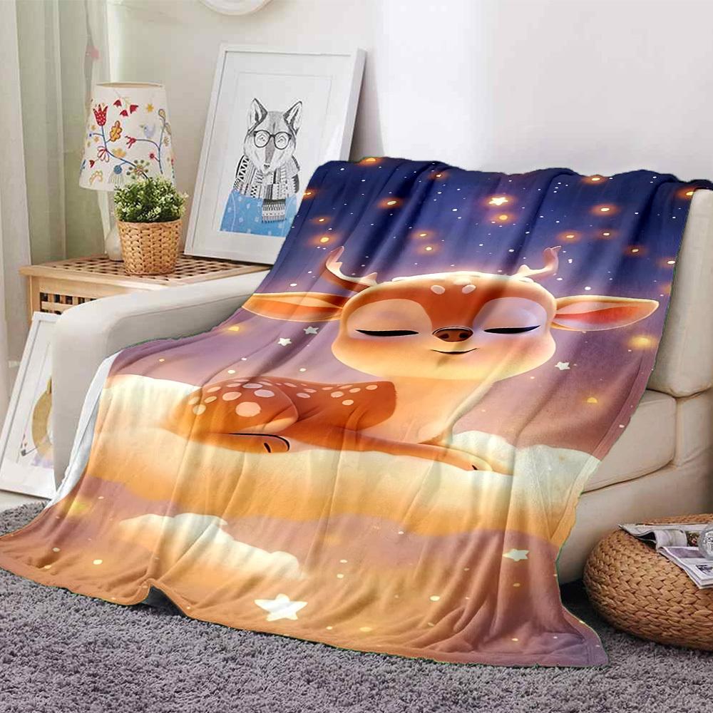 1pc Deer Name Blanket Lightweight Flannel Throw for Sofa Bed Travel Camping Livingroom Office Couch Chair