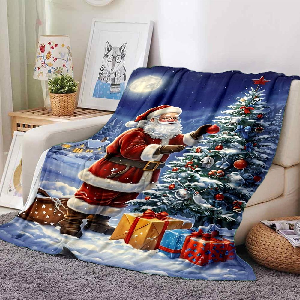 1pc Christmas, Santa Blanket Lightweight Flannel Throw for Sofa Bed Travel Camping Livingroom Office Couch Chair