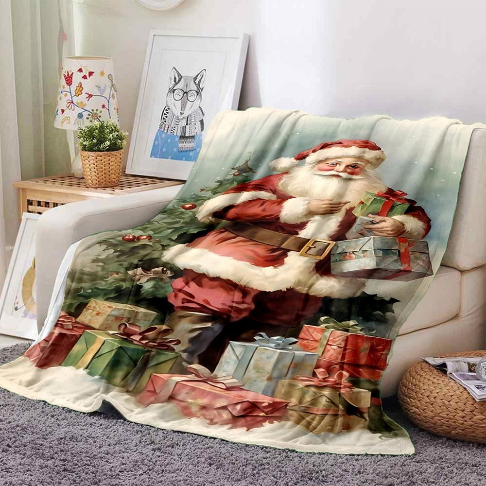 1pc Christmas Santa Claus Blanket Lightweight Flannel Throw for Sofa Bed Travel Camping Livingroom Office Couch Chair