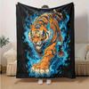 1pc Blue Flame Tiger Blanket Soft and Warm Home Decor Gift for All Seasons Perfect for Couch, Living Room, Travel, Camping, Car Blankets
