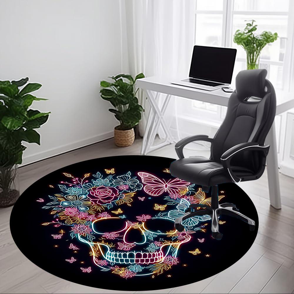 1pc Neon Skull Floral Design Chair Carpet for Office, Round Non Slip Durable Large Size Office Carpet, Suitable for Office
