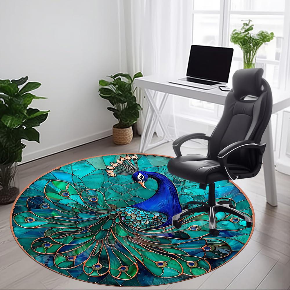 1pc Peacock Feather Office Round Area Rug, Under Office Chairs Bedroom Living Room Home Decor, Room Deco