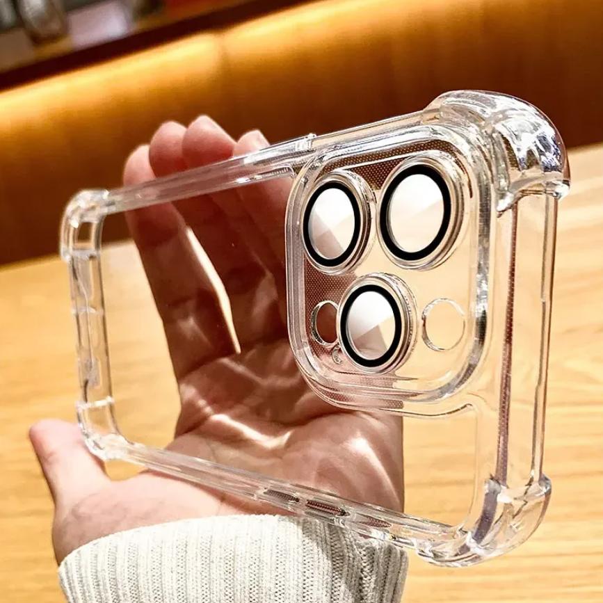 Lens Glass Protector Shockproof Transparent Phone Case For iPhone 16 15 14 11 Pro Max Plus Hard Bumper Funda Coquette