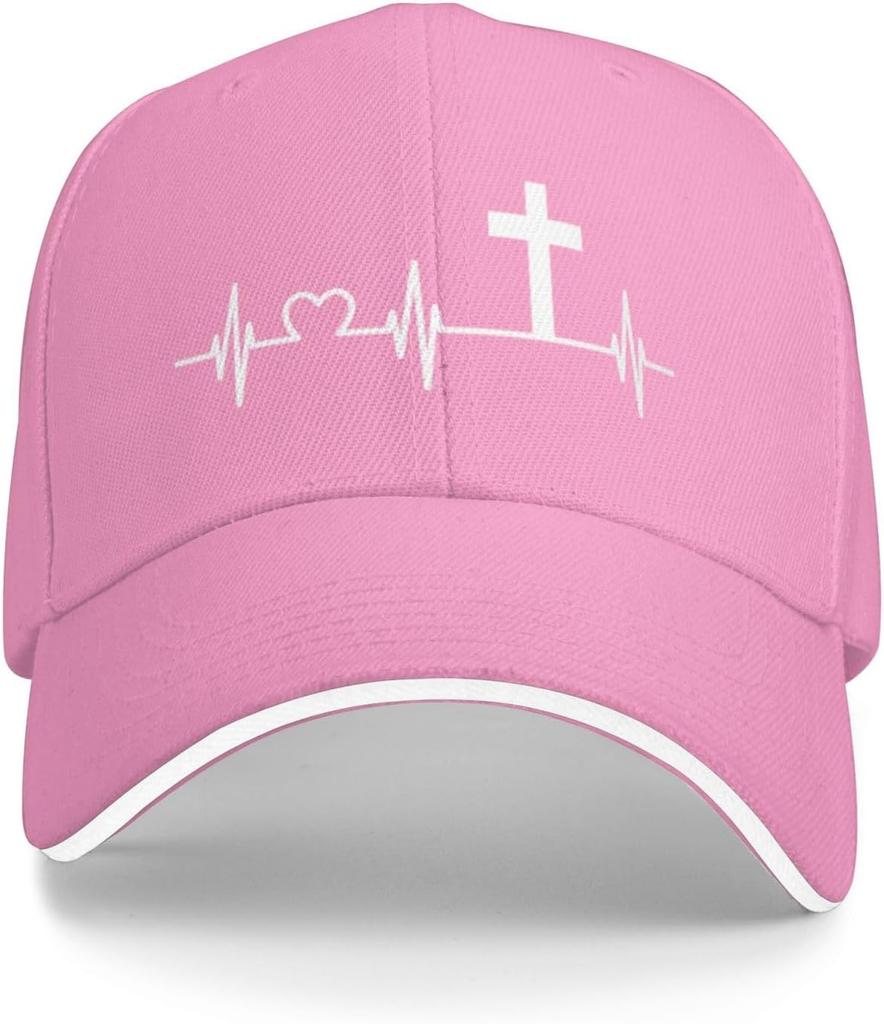 Heartbeat Cross Faith ECG Line Christian Baseball Cap Adjustable Cotton Casual God Love Hat