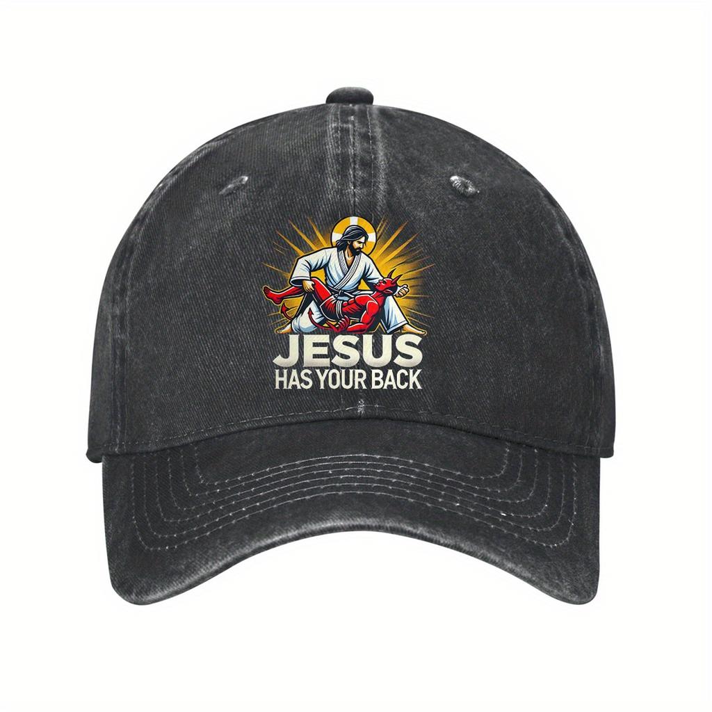 Jesus Has Your Back Graphic Baseball Cap Adjustable Cotton Casual Hat for Adults Outdoor Protection
