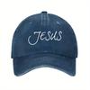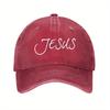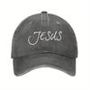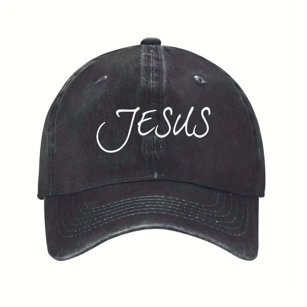 Jesus Cursive Lettering Baseball Cap Polyester Distressed Casual Unisex Hat for Church Events
