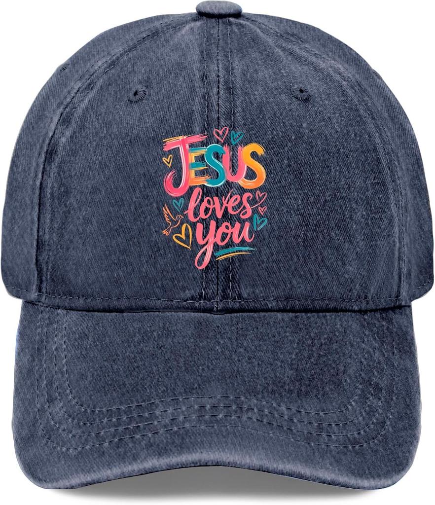 Jesus Loves You Washed Baseball Cap Distressed Polyester Casual Style Adult Adjustable