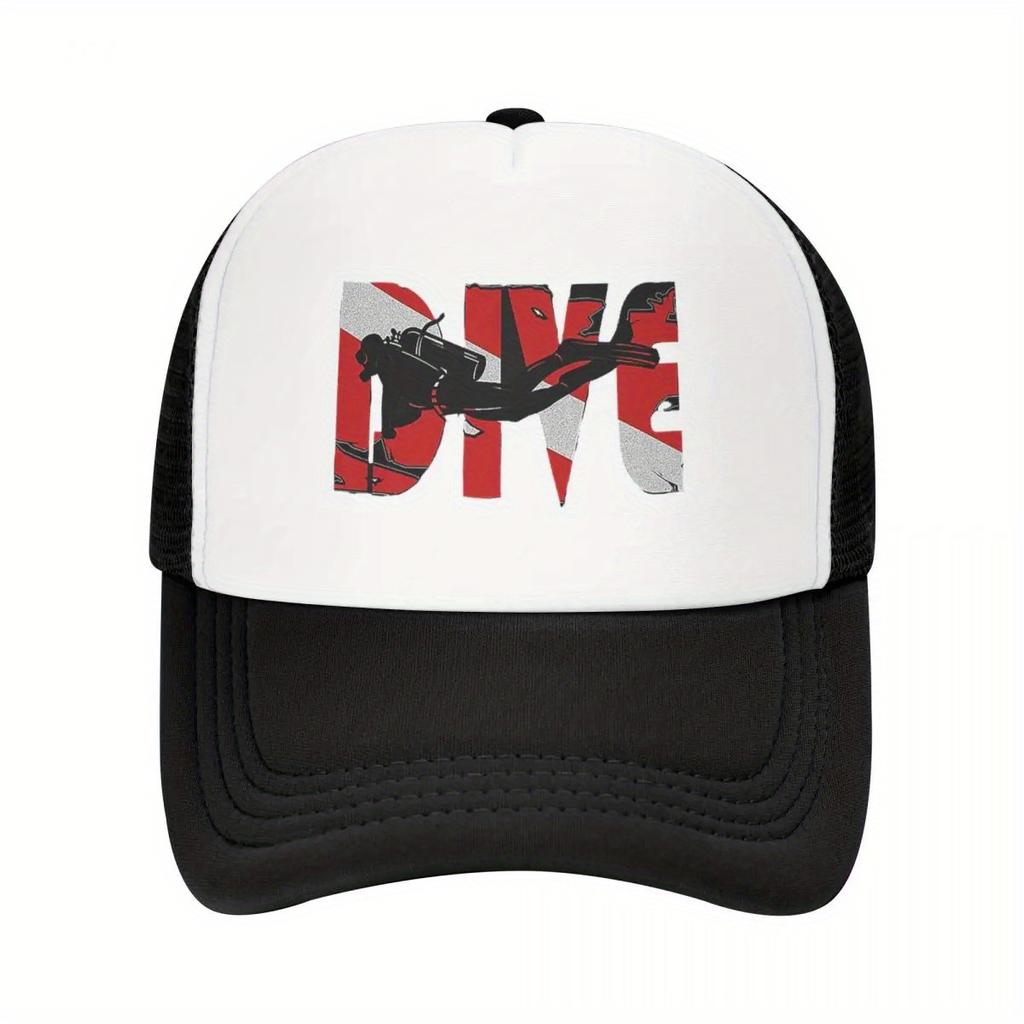 Diving Scuba Diver Graphic Trucker Hat Polyester Breathable Mesh Sports Casual Adjustable Cap Unisex