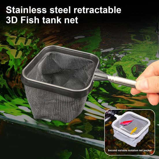 Introducing the versatile fish tank net with a telescopic and extended handle, allowing you to adjust the length effortlessly to cater to various requirements. Crafted with a fine, flexible, and durable mesh surface, this net boasts a robust load-bearing capacity, ensuring precise fish-catching without causing harm. Its three-dimensional design and deeper mesh bag make it ideal for safely capturing small fish, shrimp, and other aquatic creatures.