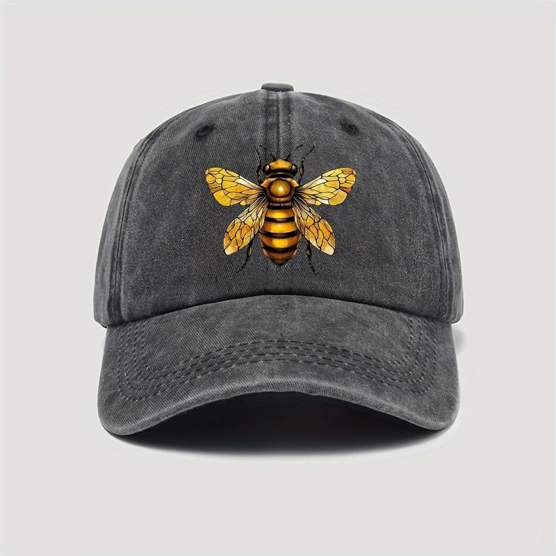 1pc Unisex Urban Style 100 Cotton Baseball Cap with Bee Print Vintage Wash Adjustable Snap ClosureAppropriate for Any Season