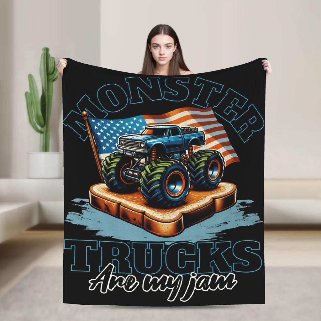 Monster Trucks Are My Jam Flannel Blanket Winter Super Warm Throw Girls Boys Bedroom Street Trend Bedspread Sofa Bed Cover