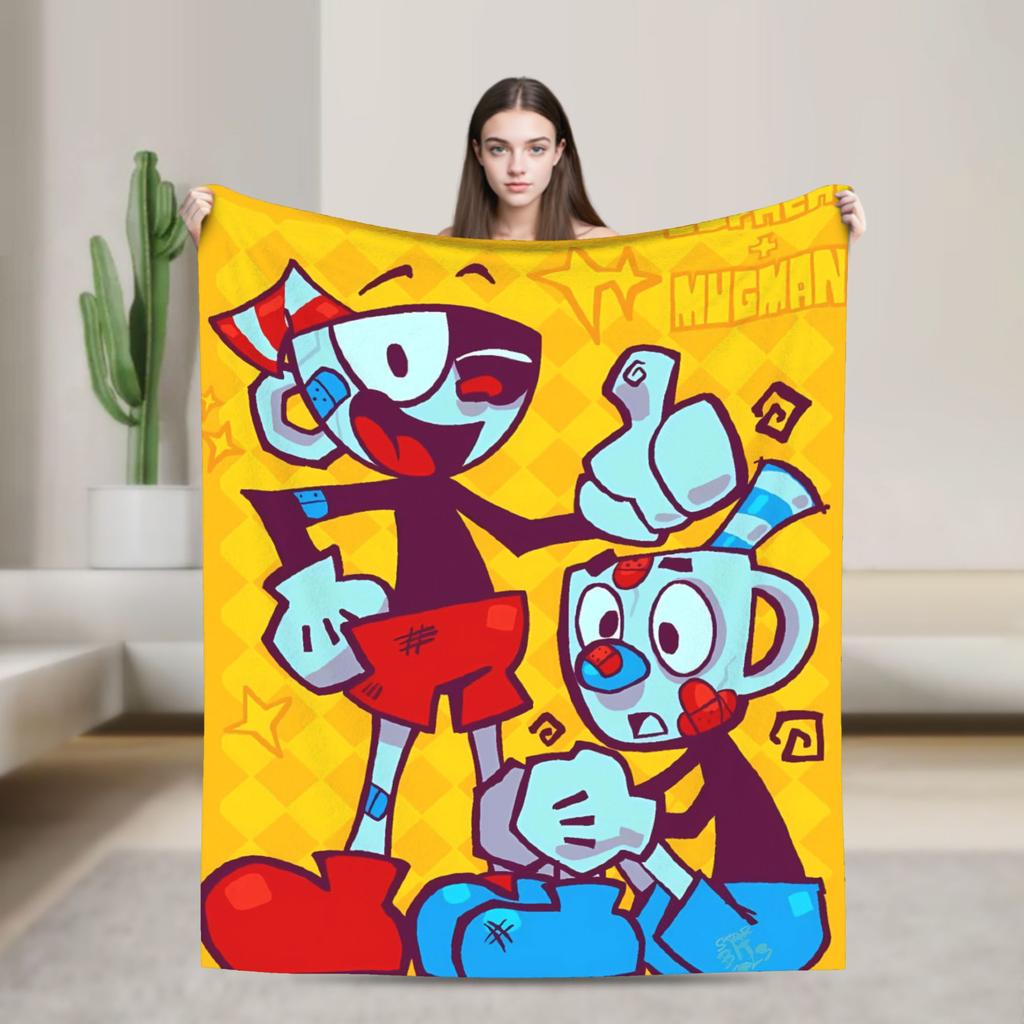 Cupheads & Mugmans Blanket Quality Super Warm Cartoon Throw Blanket Winter Girls Boys Couch Bed Street Trend Bedspread
