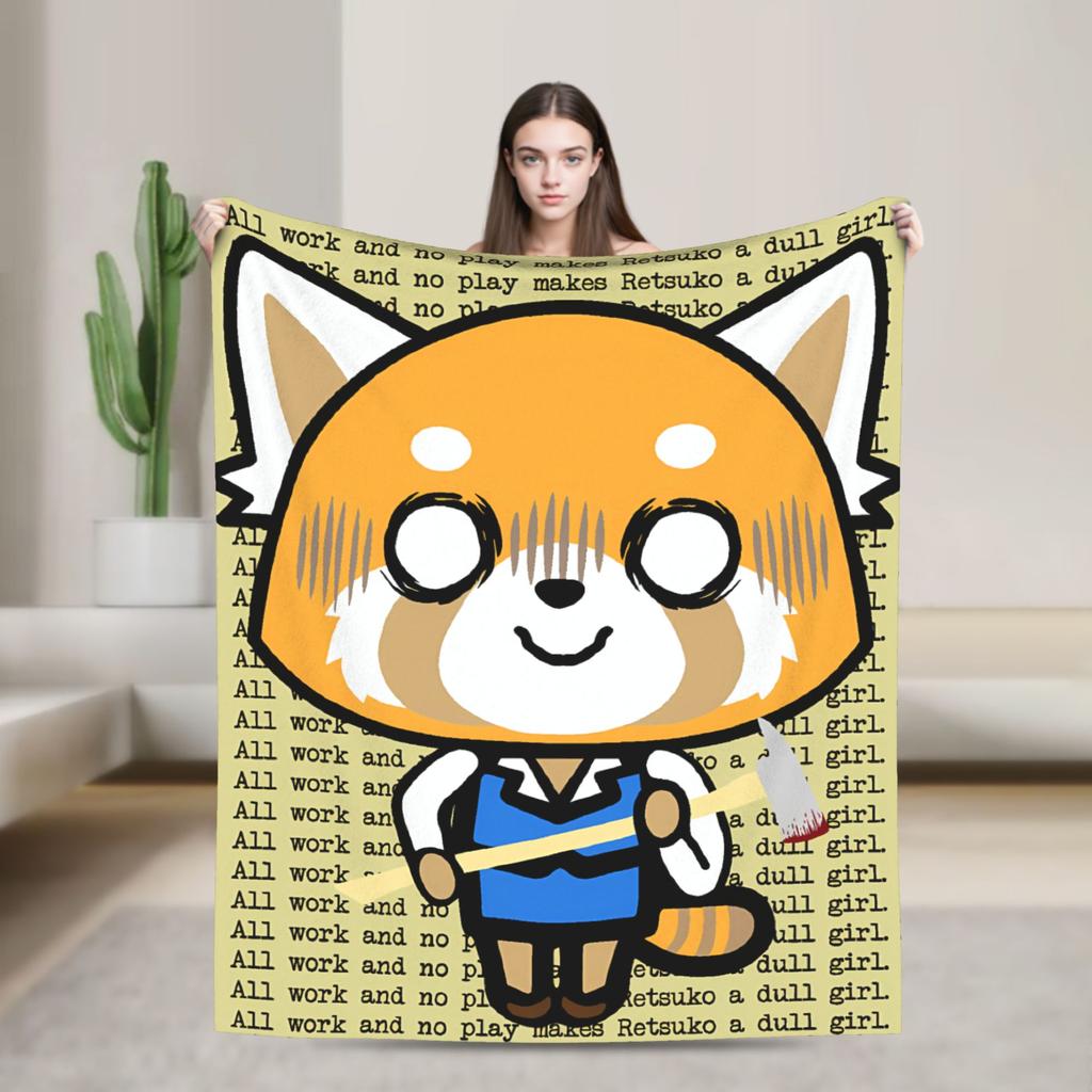 Aggretsuko Warm Soft Blanket Students Plush Throw Blanket Novelty Living Room Flannel Bedspread Sofa Bed Cover