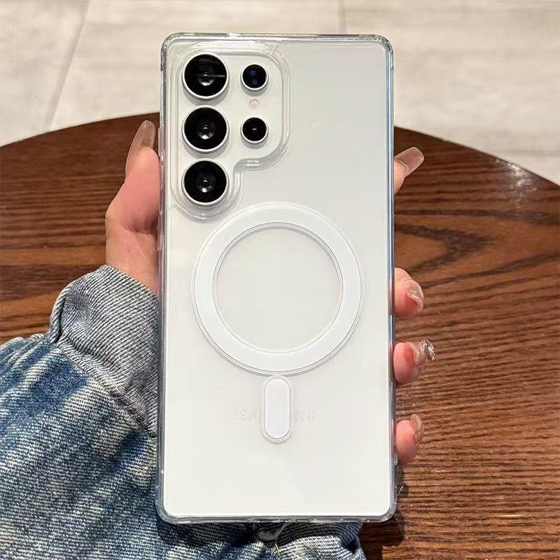 For Magsafe Magnetic Charge Transparent Phone Case For Samsung Galaxy S25 S24 S23 Ultra S22 Plus S21 FE Lear Acrylic Slim Cover