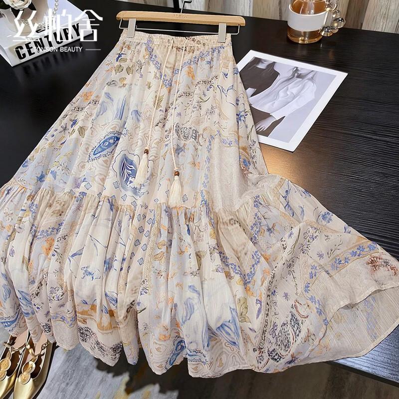 Women's Retro High-Waist Floral Maxi Skirt