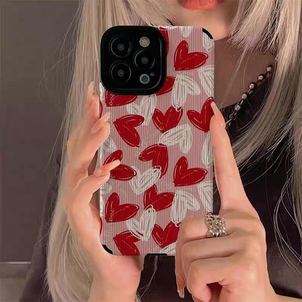 Red White Love Heart Silicone Case For Samsung Galaxy S22 Plus A52 A54 5G A53 A34 A51 A23 A32 A31 A71 A72 A73 A14 A13 A12 S21