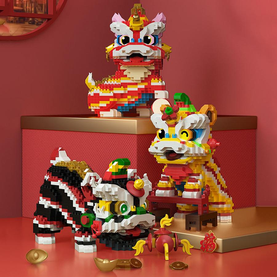Chinese Style Lion Dance Micro Building Blocks Kids DIY Toys New Year Spring Festival Gifts Creative Desktop Decorations