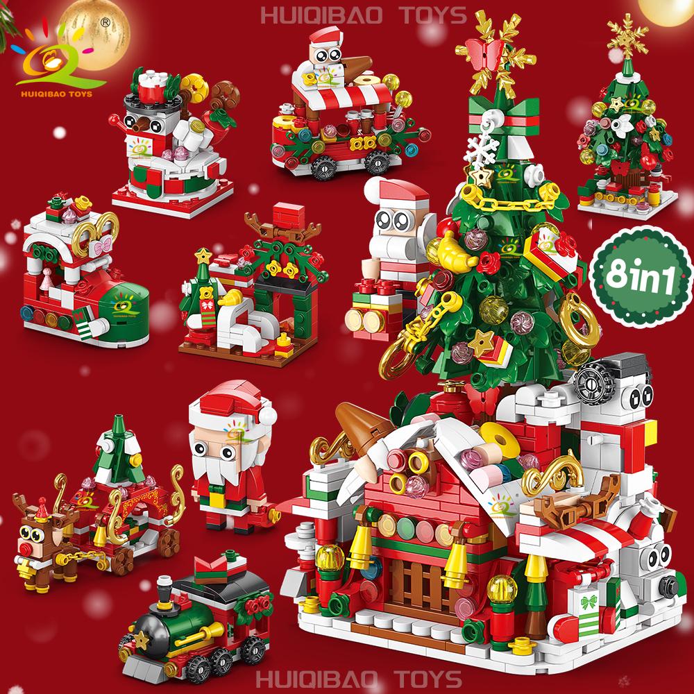 Non-Toxic Christmas 8In1 Santa Claus Tree Model Building Block Diy Elk Snowman Bricks Ornament Toys For Children Adult Gift