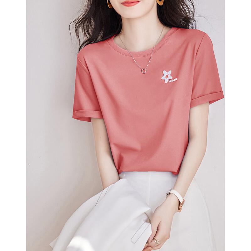 Women's Heart Embroidered Short Sleeve T-Shirt